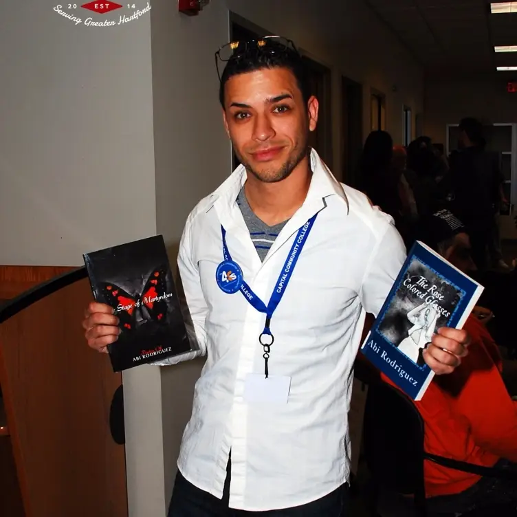 Thursday, April 28th at 6:15pm for a book signing event in the Arthur C. Banks, Jr. Library at Capital Community College. Abi Rodriguez is a Capital student who has had two books of poetry published. He will be in the library visiting with students, faculty and staff.
